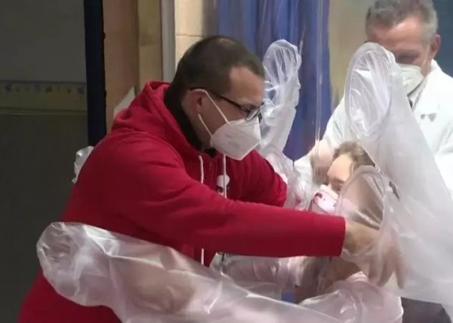 The hospital has set up a plastic "hug curtain" which allows the children to hug their parents, siblings and grandparents safely, just in time for Christmas, without covid-19 risks. There were emotional scenes in the hospital this week as in some cases parents haven't been able to hold their child in their arms for several months, with one mother calling the embrace "an indescribable emotion."