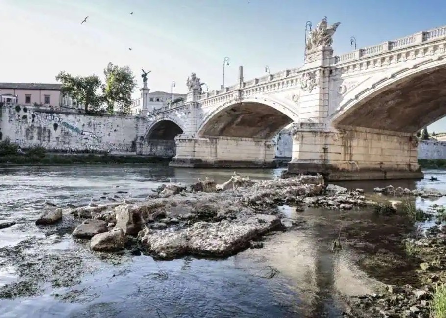 The rain is lacking and the level of the Tiber lowers. And there materializes a piece of ancient history that cyclically, with each shoal, resurfaces with its load of memory. And so, in a city that is rich in archaeological surprises, the foundations of an ancient bridge, usually impossible to see because they are always submerged, have reappeared from the river.