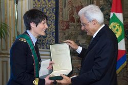 Samantha Cristoforetti has been awarded with the Order of Merit of the Italian Republic (Italian: Ordine al merito della Repubblica Italiana) today by President Mattarella. "She has been followed with affection and love by all Italians" said the Italian President while handing a paper to the young lady.