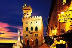 The Republic of San Marino sits at the northwest corner of the Apennine Mountains, wedged between Emilia Romagna and Marche Montefeltro. At 61 square kilometers and with a population of just over 32,000 people, only Vatican City and Monaco are smaller.