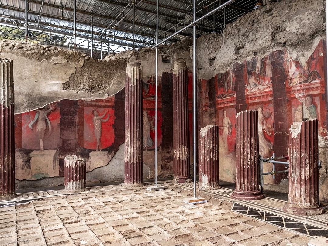 Archaeologists working in Pompeii have unearthed a series of rare, almost life-size frescoes. The discovery provides new clues into the religious life of the city before its destruction by the eruption of Mount Vesuvius in 79 AD. It includes a large frieze extending across three walls of a banquet hall.