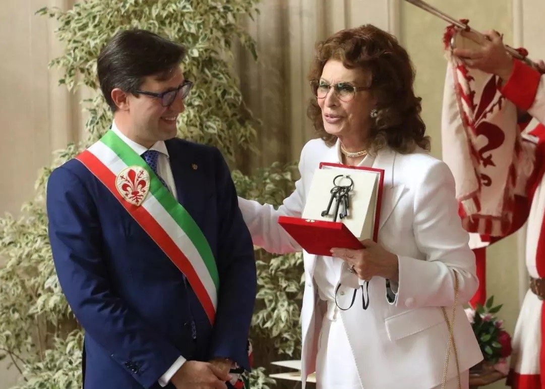 Oscar-winning Italian actress Sophia Loren received the keys to Florence at a ceremony in Palazzo Vecchio on 5 June. After conferring the honour, Florence mayor Dario Nardella performed a violin version of O sole mio especially for the veteran star of Italian cinema.