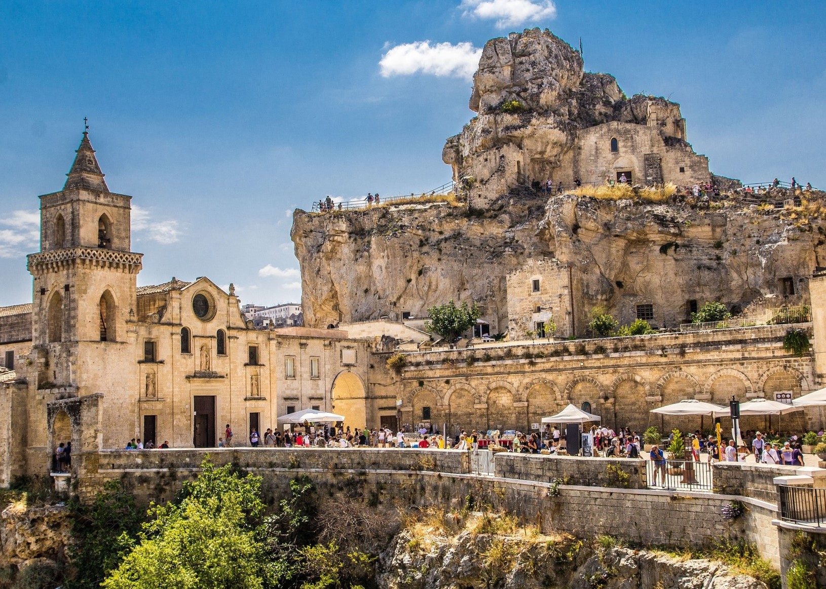 A Volkswagen bug sits on top of a limestone column, squashed by one final, huge block. The sculpture, by famed Italian artist Antonio Paradiso, stands at the entrance to an outdoor gallery housed in an old abandoned quarry not far from Matera, a small town in the Italian southern province of Basilicata. The metaphor is not a subtle one.