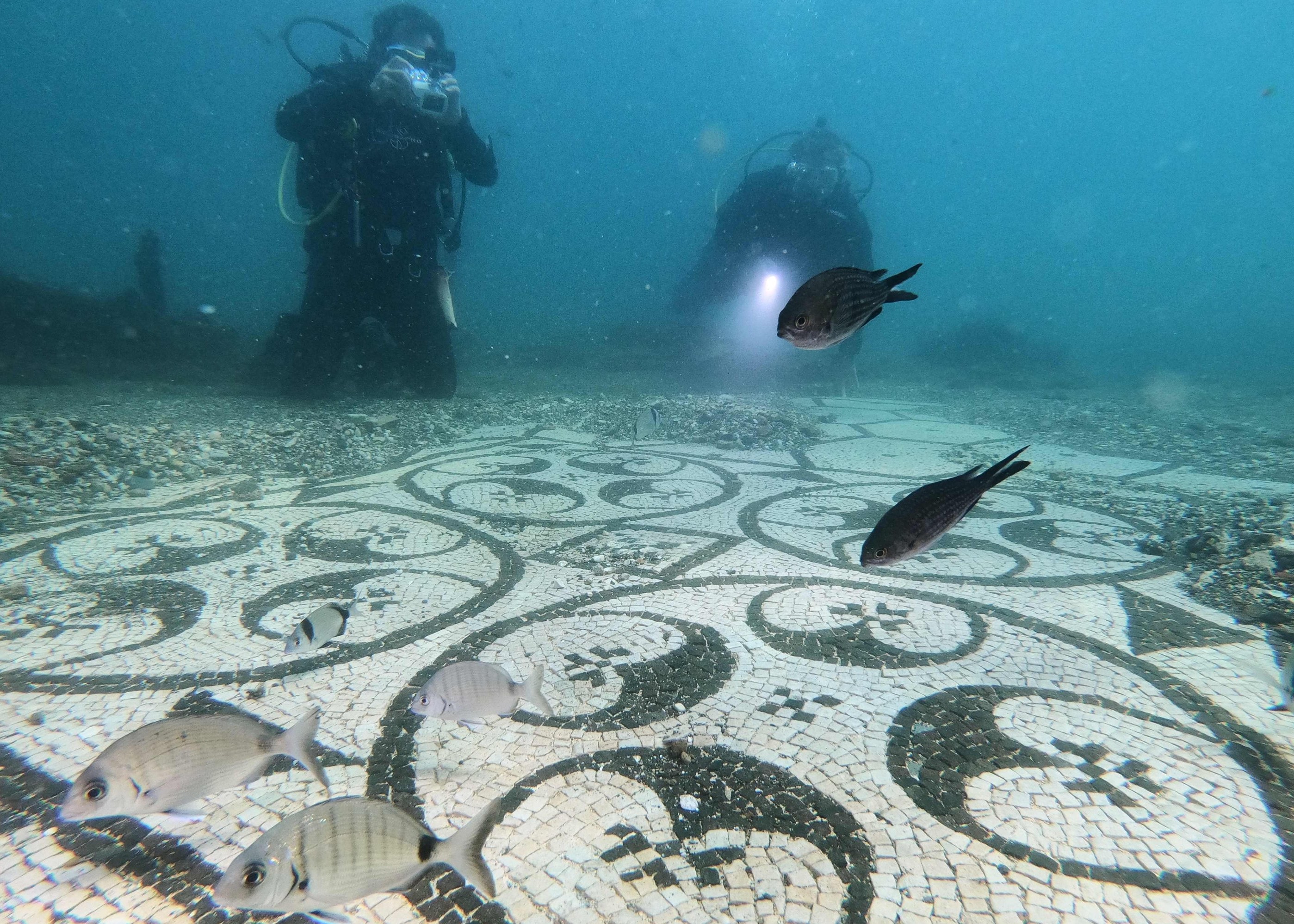 Here in the waters of the Gulf of Pozzuoli, just a few kilometres from Naples, a small wave of the hand reveals precious, ancient Roman mosaics. Divers, snorkelers, and tourists visit all year round - to travel back in time and swim through ancient streets, past mosaics, statues, columns, and the remains of what was once a seaside resort for wealthy Romans.