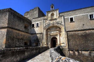 The Castle in the old town of Copertino – in the province of Lecce, Apulia – is a collection of at least three different architectural styles, fleshed out in the square fortified tower built under the Angevin rule; the sumptuous portal built under Charles III, reflecting the taste of the Renaissance with influences from Catalan art; and the mighty fortress built in 1540 by Evangelista Menga, a Copertino native, for Alfonso Castriota.