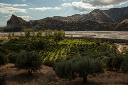 Here, between stretches of abandoned construction and acres of bergamot orchards, isolated fishing villages and ancient fortified towns still cling to the foreboding Aspromonte, mountains that seem to plunge into the Mediterranean.