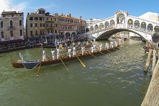 Venice is introduced as "the best place in Italy for bridge lovers" as there are about 800 over the canals that criss-cross the city. "The oldest and most famous, the 16th century Rialto Bridge, is an instantly recognisable icon of Venice. Its unique, arched porticos rise steeply above the Grand Canal. Until the 19th century it was the only bridge that crossed the Grand Canal".