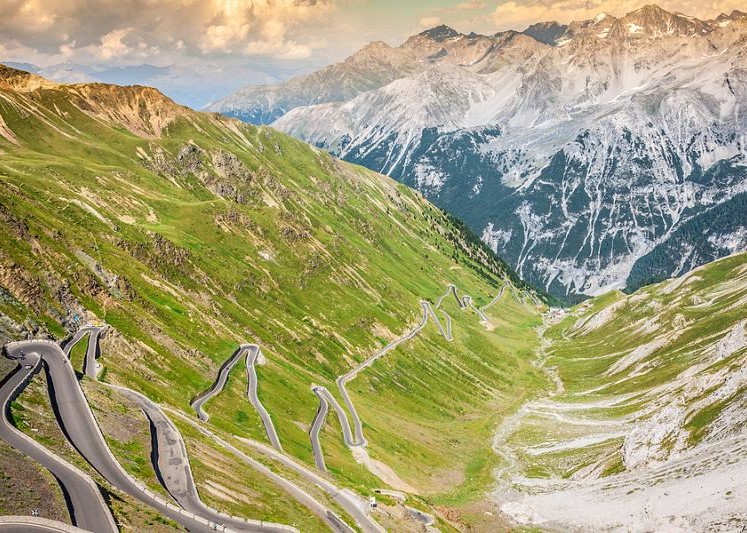If you love driving mountain roads, this is the itinerary for you: the Stelvio Pass, the highest car pass in Italy, located at an altitude of 2,758 meters (9,050 feet) is a thrilling drive that includes 48 hairpin bends!