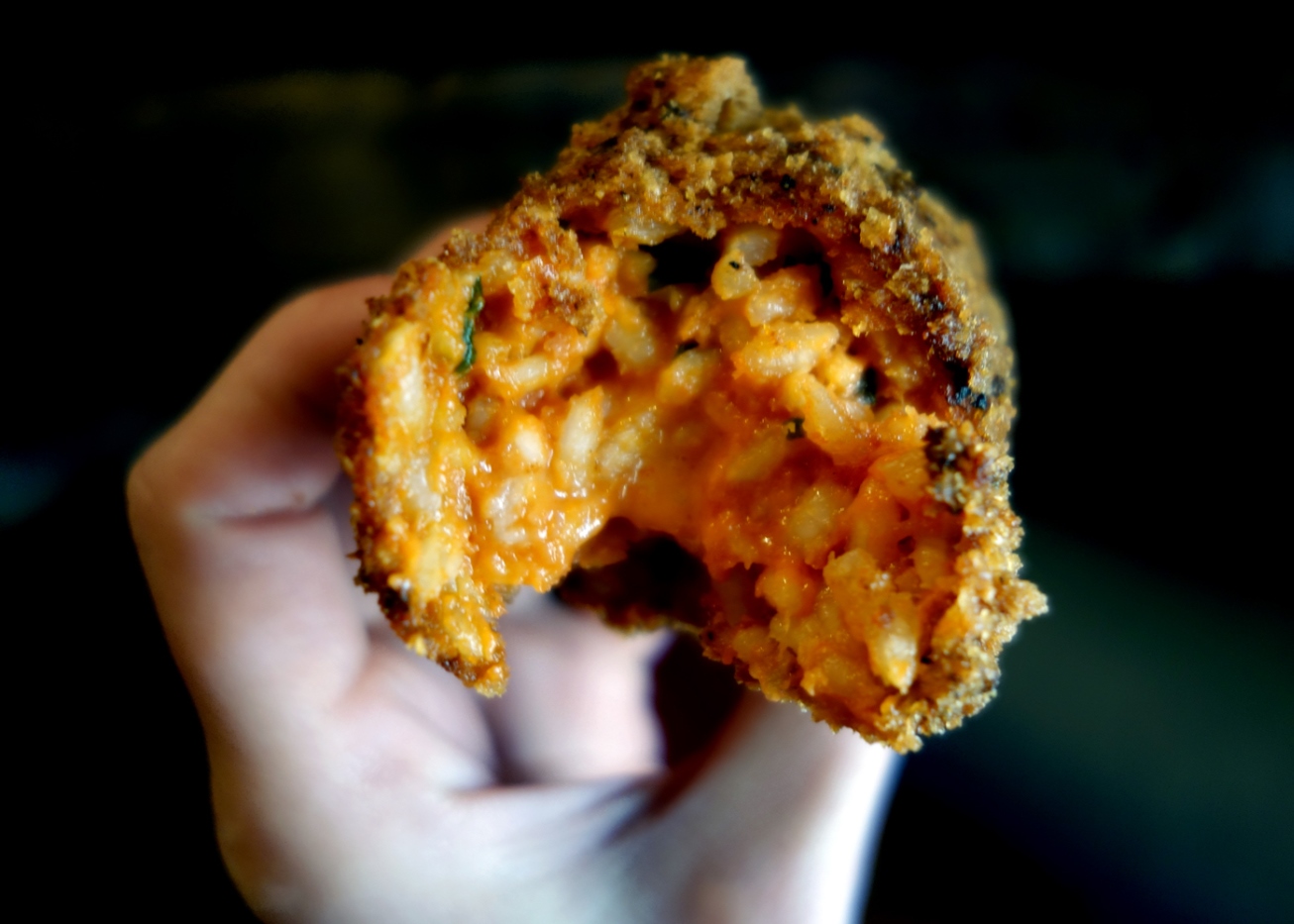 Supplì are typical Roman things – balls of rice flavored with different ingredients, dipped in raw egg, coated in breadcrumbs and fried to a golden brown crunch. They’re similar to Sicilian arancini, although the latter tend to be larger in size and they traditionally do not contain cheese while supplì do. I’m pretty sure that the fillings for both have changed over the years to appeal to a wider range of snackers. Suffice it to say, I didn’t find any supplì with chicken giblets (the classic Roman recipe).