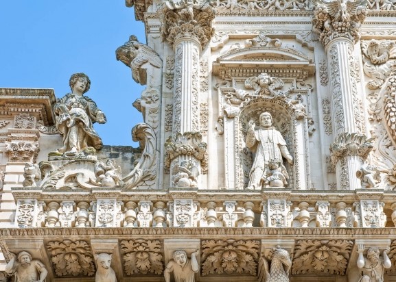 Lecce, nicknamed the ‘Florence of the South’, is one of Puglia’s most fascinating cities for its architecture, which is identified as a peculiar style of Baroque, the ‘Leccese Baroque’. It is especially during the 17th century that some of the most magnificent monuments were built, using the so-called ‘Lecce stone’, a particular kind of limestone, soft and workable, which makes it ideal for sculpting.