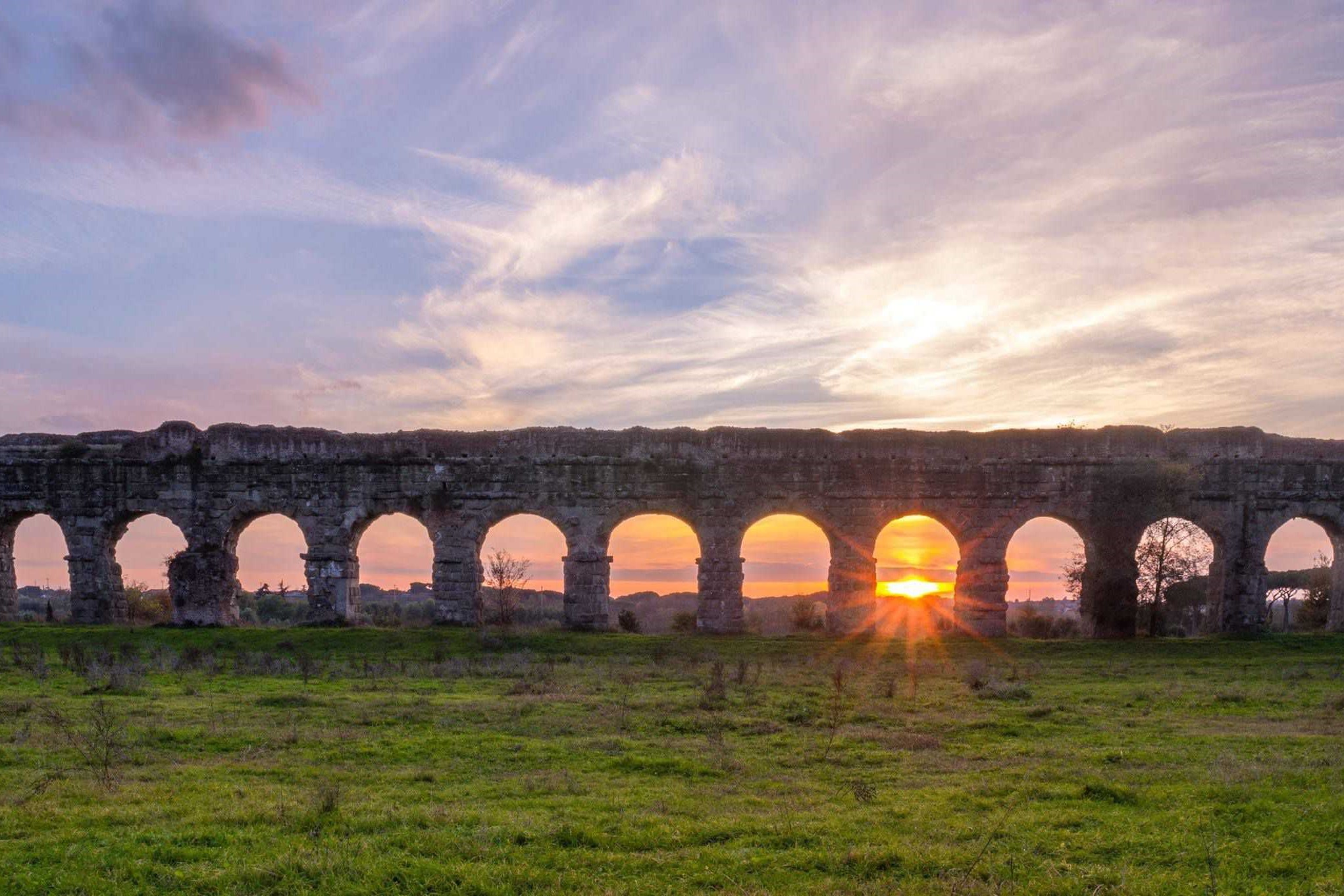 The stone arches looped solemnly over their shadows, some teetering above the grass, some sinking into it. It was a dazzling January morning, and I was standing in the Park of the Aqueducts, about 20 minutes by metro from central Rome.