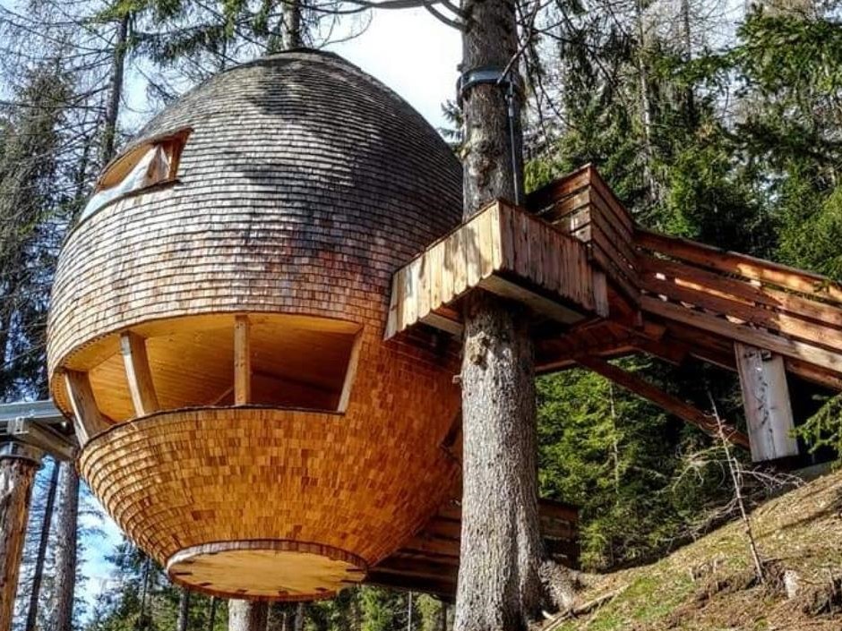 Moving northeast, in Trentino Alto Adie, Caravan Park Sexten offers a tree house built according to modern green building principles.Also in the north, in the Julian Alps, Malga Priù in Ugovizza has created original habitable “pine cones,” built on three levels, completely eco-sustainable and powered by renewable sources.In the province of Pordenone, the Tree Village in Claut is considered the world's largest tree house village, offering a more spartan experience, with no electricity and communal facilities.