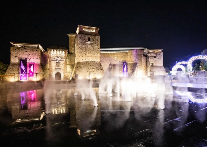 As I walk through the gate of the 600-year-old Castel Sismondo in Rimini on Italy’s Adriatic Coast, I’m enveloped by a muttering voice. No, the voice isn’t my own internal monologue saying, “um, what is this trippy place,” though it does add to that sentiment.