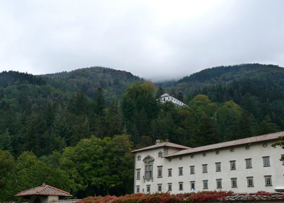 VALLOMBROSA ABBEY IS A CENTURIES-OLD monastery in a pristine Tuscan mountain valley founded in 1036 by San Giovanni Gualberto, a Benedictine monk who left Florence to found a monastic order emphasizing isolation, contemplation, and silence. While the Vallombrosan Order he founded has significantly shrunk in the modern era, the abbey they built over several centuries in this picturesque setting is a testament to their faith and their commitment to the natural world.