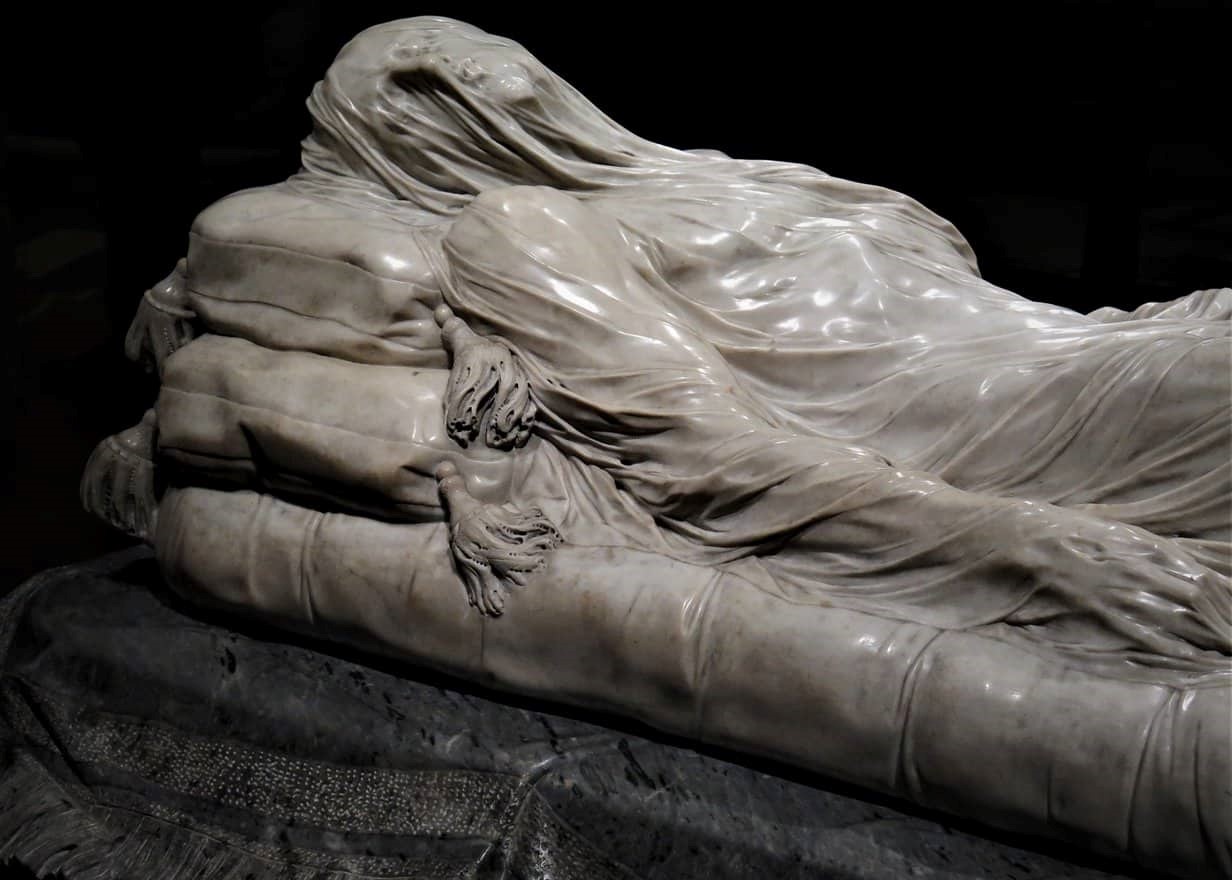 The Veiled Christ is renowned because it seems almost impossible. How can a sculptor make marble seem transparent? Yet this is exactly what Sanmartino has achieved with his masterpiece – Christ laid down, covered in a shroud that seems so real but so thin that we can still see his still features.