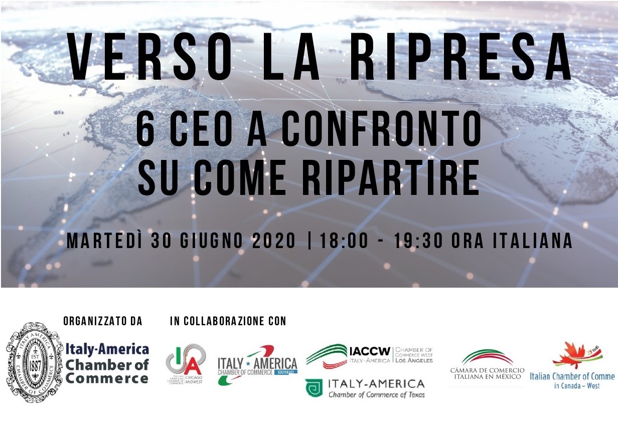 La Camera di Commercio Italiana a New York organizza un webinar in lingua italiana sulla ripresa economica e sui nuovi scenari che si apriranno per le imprese italiane sul mercato USA. Gli AD di primarie aziende italiane e non si confronteranno sulle strategie, opportunità e sfide che il mercato post-Covid ci presenterà. REGISTRAZIONE. Il dibattito sarà moderato dal giornalista Andrea Fiano, corrispondente dagli USA di Milano Finanza e editore di Global Finance.