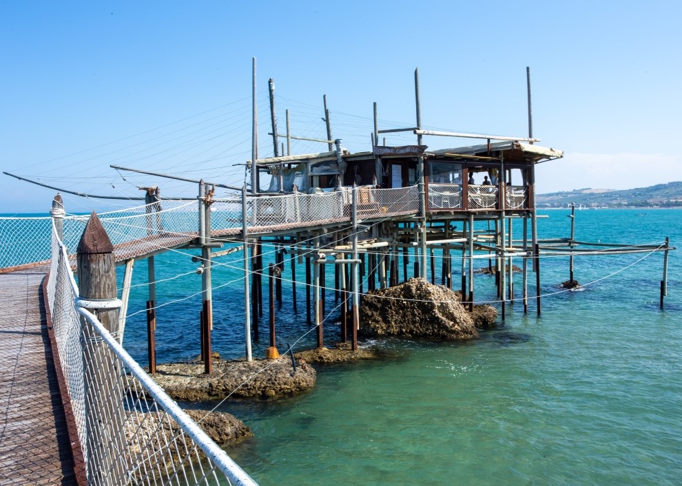 Along Italy’s Adriatic coast, you’ll find a unique seaside construction, the trabocchi (or trabucchi): they are a traditional type of fishing machine, popular in the regions of Molise, Puglia, and especially Abruzzo, specifically along the Costa dei Trabocchi, a stretch of coastline between Ortona and Vasto.