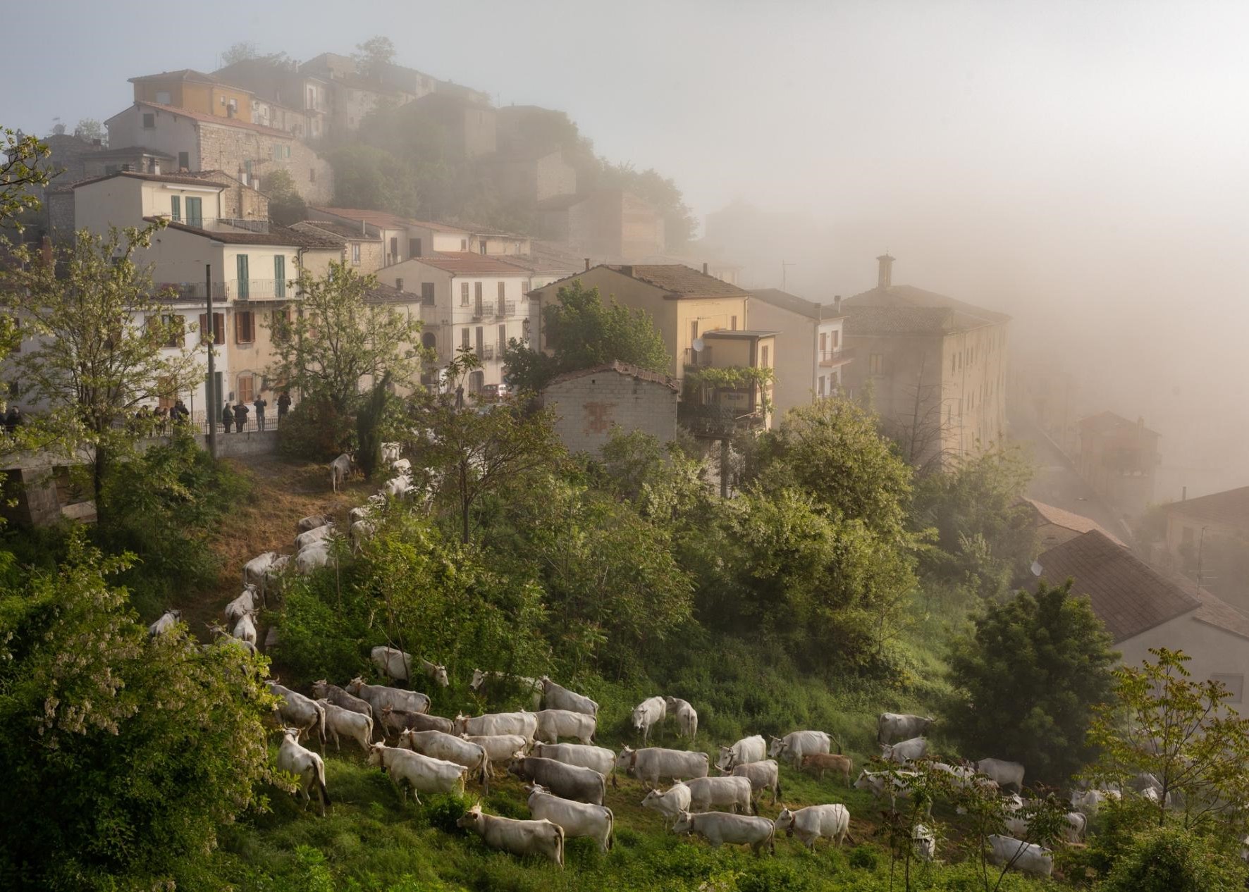 The route from the farm to the animals’ summer pasture follows a tratturo, the Italian word for the paths carved into this land by more than 2,300 years of such migrations. After clattering through Anversa’s cobblestone streets, the sheep and their herders scramble upward.