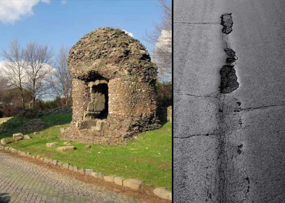 This expansive area was connected through an extensive roadway system. But if this was made in ancient times and was heavily used, why does it look like the famous Roman roads had no potholes, but our roads are full of them?