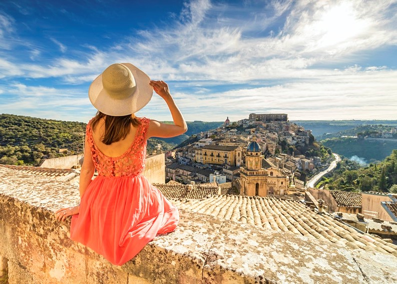 Sicily enjoys a classic Mediterranean climate, with hot, sunny summers and mild winters with moderate rain. During the picture-perfect spring and summer, tourists flock to Sicily to swim, surf, and sightsee, but the fall and winter are excellent seasons for enjoying the island's food, architecture and culture. Despite the delightfully mild weather, the summit of Mount Etna, Sicily's landmark volcano, is typically snow-capped from October through May.