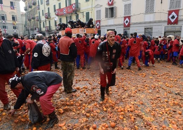 Italy is home to many spectacular spring carnivals, from masks and extravagant costumes in Venice to political satire in Viareggio. But one of the most unusual festivals takes place in a small town in northwestern Italy, where thousands gather each February to wage war... with oranges.