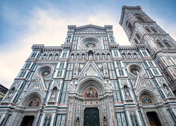 Florence’s Cathedral, or Santa Maria del Fiore, is the world’s third largest church, after St. Peter’s in Rome and St. Paul’s in London. It is 153 meters long, 90 meters high, and 90 meters wide. Designed by Arnolfo di Cambio, it was dedicated to Santa Maria del Fiore, the flower (‘fiore’) in question being a reference to the lily, symbol of the city.