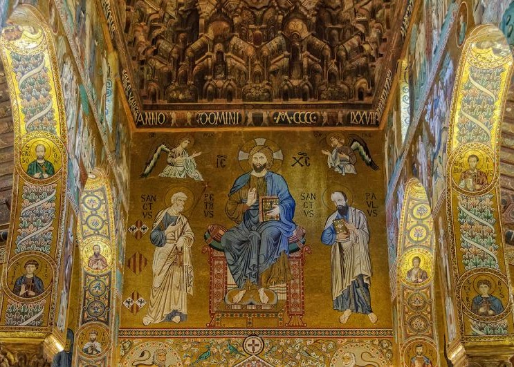 The Palatine Chapel was commissioned by Roger II, King of Sicily, who wanted to highlight the prestige of his kingdom. The Latin features are visible in the Roman columns and in the discs of red porphyry on the walls, which had been used by Roman emperors as symbols of their power.