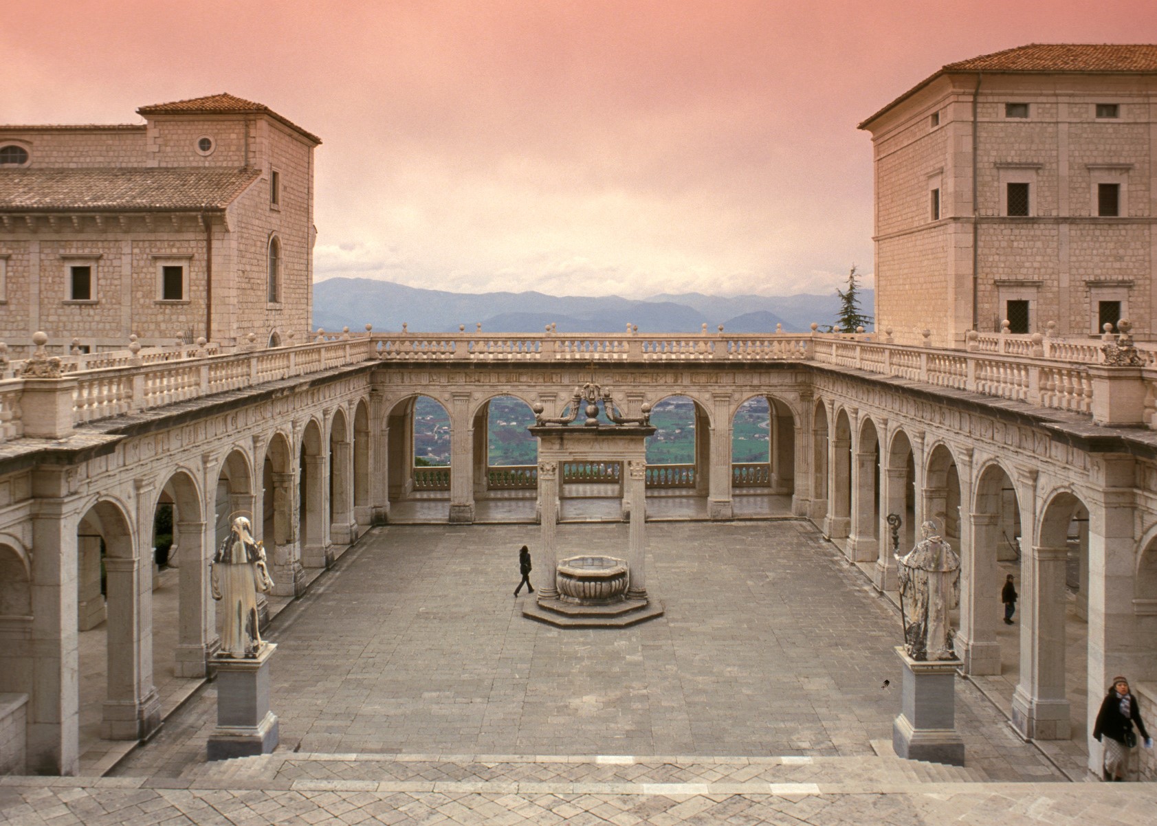 The abbey was the theatre of the Battle of Montecassino in 1944, during WWII. The bombings completely destroyed the abbey (halting its production of beer as well), which has since then been rebuilt to look exactly the same, on the same rock in the province of Frosinone some 100km south of Rome.
