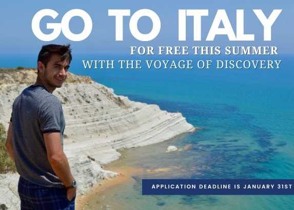 Time is running out! Deadline to apply is January 31st! For more than 20 years, the Ambassador Peter F. Secchia Voyage of Discovery has been providing Italian American college students who have never been to Italy a trip to discover their heritage every summer. Learn more here.