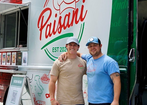 As the lunchtime crowd starts to grow outside the window of Paisani, the Italian food truck that he and fellow UMass Lowell alum Ryan Palmer ’20 started last year, Minichiello races to keep up with orders for Drunken Parm, Caprese Melanzana and Sloppy Paisani sandwiches.