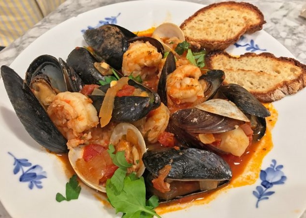 Curious about its beginnings, I learned Cioppino is an Italian-American dish that originated in San Francisco. Immigrants from Genoa, Italy, settled in the North Beach neighborhood of San Francisco in the 1800s. Fisherman would use their catch of the day to make the dish while still out at sea. Eventually, the stew made its way to homes and restaurants. Alioto’s, a San Francisco landmark, apparently put this stew on the map.