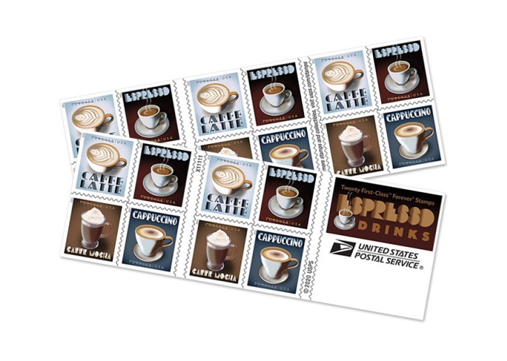 The U.S. Postal Service celebrates America’s love of coffee today with the issuance of four new stamps. Whether milky, dark as night, sweetened, flavored or highly concentrated, many coffee drinks have one thing in common — they begin with espresso.