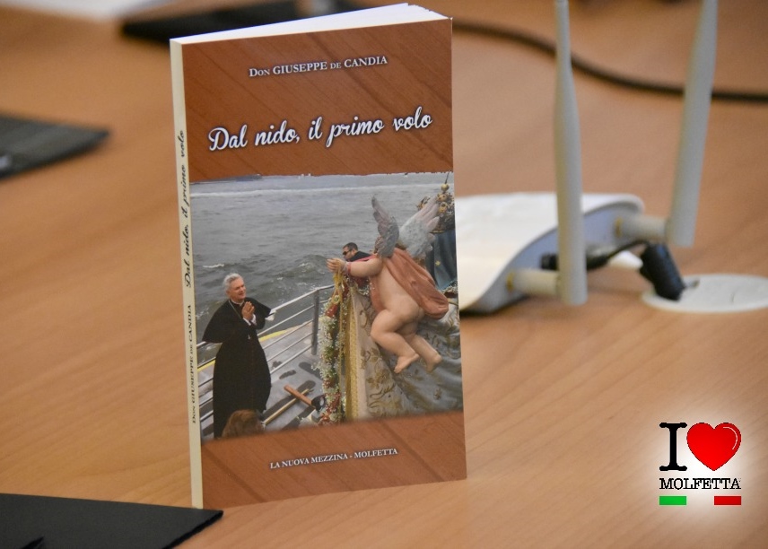 Il libro "Dal nido, il primo volo", questo il titolo, è stato presentato nelle sale del Museo Diocesano a Molfetta. A darne notizia è il Servizio Pugliesi nel Mondo della Regione. Presenti, oltre al vescovo e all'autore, anche Antonio Albanese, responsabile dei rapporti con l'Italia della Società Madonna dei Martiri di Hoboken, giunto per l'occasione dagli Stati Uniti per consegnare a monsignor de Candia la fascia tricolore di presidente onorario del sodalizio.