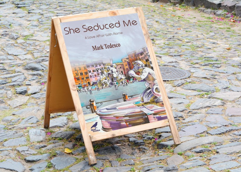 Reading this book transports the reader into another world and reveals the city through its stories that are informative, funny and insightful. The title of the book is: She Seduced Me: A Love Affair with Rome and the author is Mark Tedesco. The book begins with: "I resisted, but she drew me back. I stayed away, but she beckoned me. I distanced myself, but she haunted me. I even rejected her but she did not abandon me..."