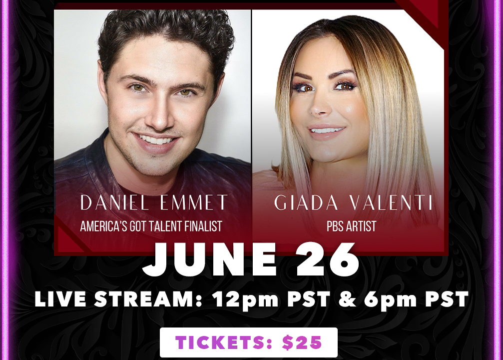 Streaming two (2) live shows, Friday, June 26, at 12:00 PM PT and 06:00 PM PT. On this intimate, acoustic evening, Daniel and I will take you on a multi-genre journey complete with show-stopping solos and breathtaking duets accompanied by three of the best musicians from Las Vegas. We wil sing many songs in English, Italian, Spanish and French.