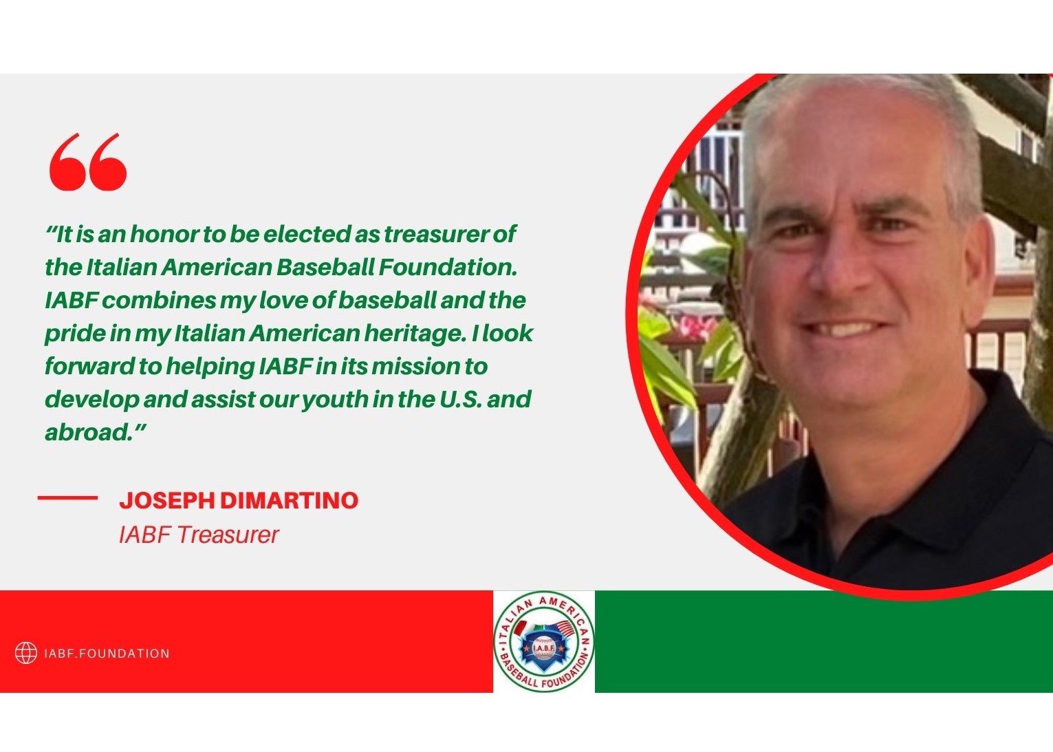 “It is an honor to be elected as treasurer of the Italian American Baseball Foundation,” said DiMartino. “IABF combines my love of baseball and the pride in my Italian American heritage. I look forward to helping IABF in its mission to develop and assist our youth in the U.S. and abroad.”