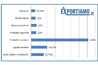 Secondo i dati del Dipartimento del commercio americano, che segnalano i mercati più dinamici da gennaio a giugno, si è assistito ad un fortissimo aumento delle importazioni italiane degli Usa di auto, trattori e motocicli (+31,72%) trainato dal processo di fusione fra Fiat e Chrysler. Anche le esportazioni più tradizionali, come le preparazioni di carni e pesce, le farine, la frutta ed il vino, ottengono ottimi risultati (+40,32%).