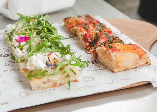 Over the past decade, Callegari and Bonci have become Rome’s premier pizzaioli, emerging as innovators in a crowded market by pushing the boundaries of Rome’s ubiquitous pizza al taglio (pizza by the slice), a style unique to the Italian capital. Generally speaking, this Roman fast food sold in bakeries and takeaway shops, where it is baked in rectangular pans in electric deck ovens, then sliced and sold by weight.