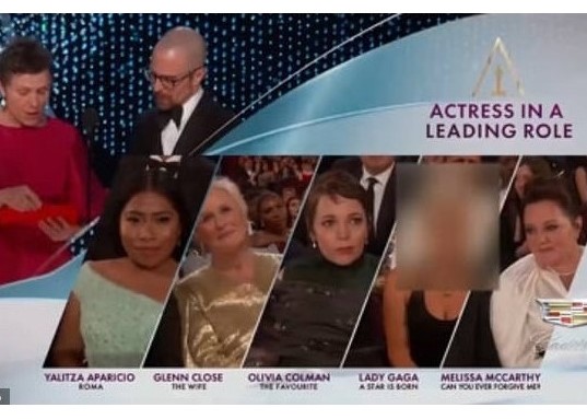 Lady Gaga's fans in China have been enraged by the move from Mango TV, which they say blurred out the 32-year-old's face during the presentation of the Best Actress award and deleted her performance of Oscar-winning song 'Shallow' with her co-star Bradley Cooper.