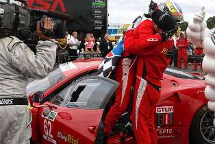 Henzler, gambling on fuel in his Team Falken Tire Porsche 911 RSR, restarted in the lead but came under heavy attack from a hard-charging Fisichella, who pushed his Ferrari F458 Italia to the limits in the action-packed closing laps. The two ran nose-to-tail and sometimes side-by-side, with Fisichella managing to power by Henzler for the lead on the final lap.