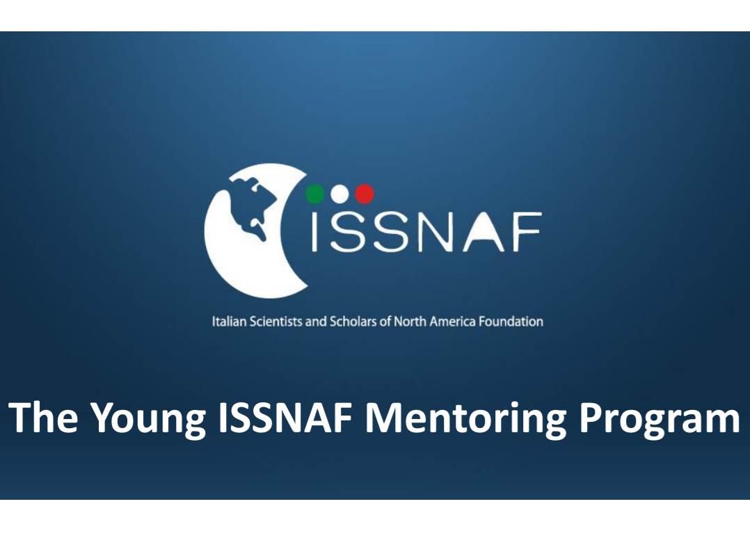 The Young-ISSNAF Mentorship Program aims at supporting and guiding junior Italian researchers in North America in their career choices and professional growth by matching mentors and mentees within ISSNAF network. While mentorship is a well-developed practice in most Institutions, the Young-ISSNAF Mentorship Program offers junior faculty an external independent support of highly experienced Mentors who share the same cultural and personal background with the Mentee.
