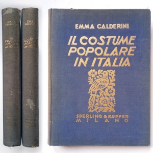 The 200 costume color plates on our website and those whose descriptions that often appear in our newsletter Tradizioni are from the book, “Il costume popolare in Italia”, written and illustrated by Emma Calderini. Our founder, Elba Farabegoli Gurzau, wrote a wonderful book on Italian regional dress called “Folk Dances, Customs and Costumes of Italy”. To this day, it’s still used as an English language resource for individuals looking to make an authentic costume. For me, one of the things I love to do in Italy is seek out the museums that have costumes to see with my own eyes how the fabric, design and adornment changes from locale to locale.