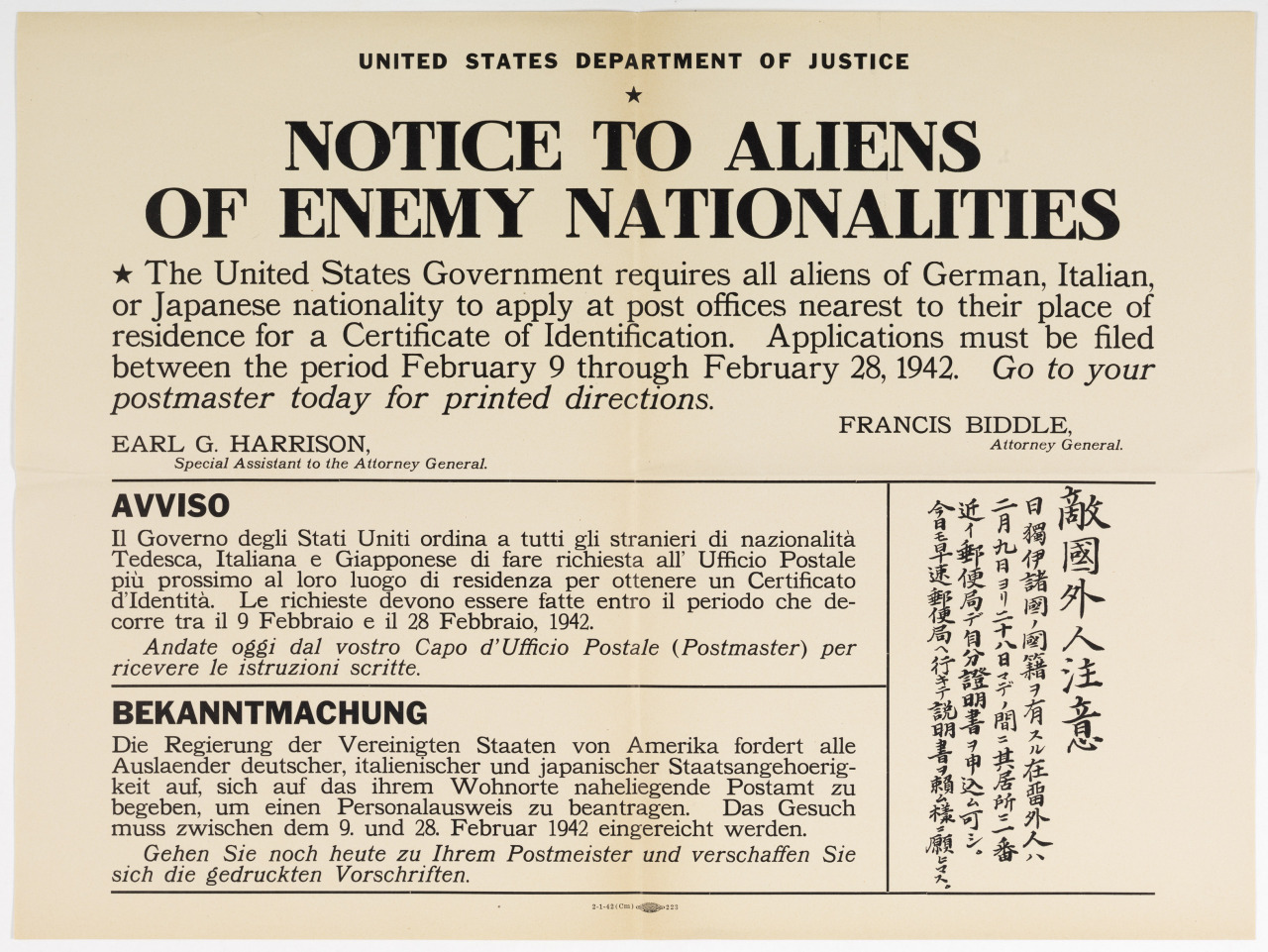 There are also citizens who have to object if government measures cross the line. For example, in the case of the Japanese Americans, I believe the measures went over the line, and I also believe that in the case of Italian Americans: even though I would also say that the Attorney General of the United States, Francis Biddle, was in fact a civil libertarian, he eventually went on to become the Head of the American Civil Liberties Union. We have documents that show that in 1943 Biddle sent a memo to the Head of the FBI, Herbert Hoover, in which he specifically said that this classification of "Potentially Dangerous" was itself dangerous and should be abandoned and never be used again.