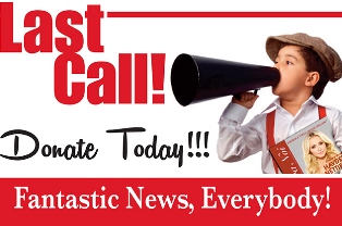 I'm at the tail end of my crowdfunding campaign, and I'm hoping you're in a position to make an 11th-hour contribution. We've raised more than $20,000 to date via check and online payments and my goal is to get as close to our $30,000 target as possible by the official end of the campaign this coming Tuesday.