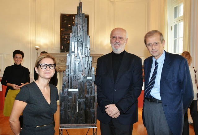 La colossale innovazione tecnologica che ha preceduto l'era del digitale diventa arte attraverso le opere dello sculture Giorgio Milani presentate ieri al Consolato Generale di Park Avenue nella mostra "Poetari e Frottage".