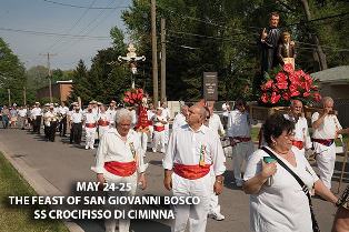 THE FEAST OF SAN GIOVANNI BOSCO SS CROCIFISSO DI CIMINNA at Casa Italia in Stone Park is sponsored by Società San Giovanni Bosco SS Crocifisso di Ciminna. Festivities culminate on May 25 with an 11:30 a.m. procession and noon Mass, followed by a family festival with food, live entertainment, a procession with the Sicilian Band of Chicago and evening fireworks. A vespers service will be celebrated at 7:30 p.m. on May 24 in the Casa Chapel. (Tony Napoli, 847-537-3365)