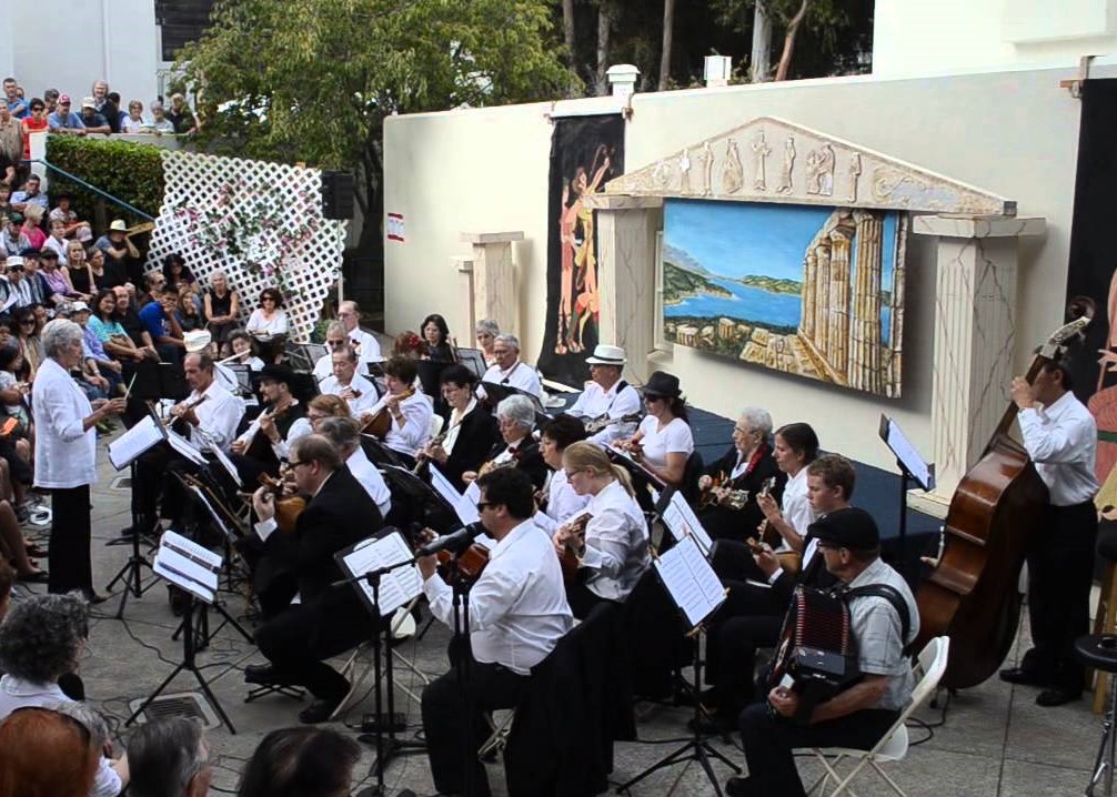 From behind the double doors of an annex to the Veterans Memorial Senior Center comes the disembodied whiff of music that can’t be – but it is – right out of “The Godfather.” Or is it back to Sorrento that this river of lush and romantic sound carries off someone who’s only gone out to walk the dog — and come within earshot of the Aurora Mandolin Orchestra?