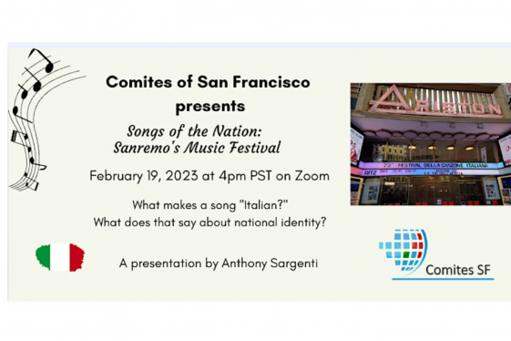 Sunday, 19 February 2023, 16:00 – 17:15 PST. Online zoom. Il Festival della canzone italiana di Sanremo annually highlights the best of Italian singers, songwriters, and songs. The winner receives national and international recognition, going on to represent Italy at the Eurovision Song Contest. Sanremo has become a cultural institution that shines...