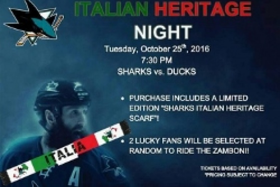 Our San Jose Sharks are back in action and in less than a week we will celebrate "Italian Style" at the SAP center. Hurry and purchase your tickets now for the game on October 25th and tell them you are with Little Italy San Jose or use promo code "Italia" and buy them online at www.sjsharks.com/italia ~ First 300 tickets sold will get a special m...