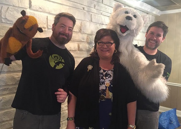 Co-owners Marc Petrosino and Michael Latini of Monkey Boys Productions located in a former steel warehouse in Glenside, Pa., are puppeteers, designers and fabricators. They create puppets, props, creatures, costumes, practical effects and entertainment for film, TV and stage.